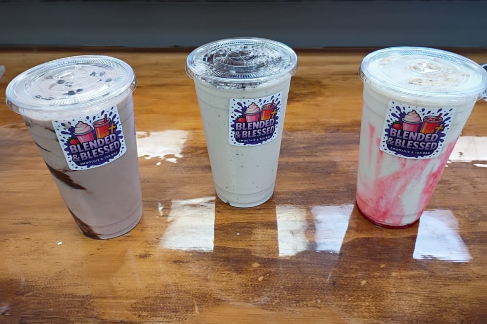 The gist: The business offers a variety of protein and fruit smoothies, alongside iced protein coffee. Blended and Blessed Protein Bar also offers pastries such as cake pops, protein pies and protein donuts.