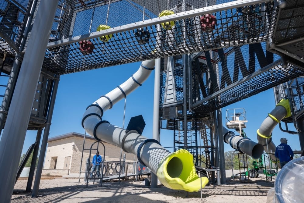 The structure is twice the size of the original playground and will feature integrated lighting to allow for visitors after dark. It also includes rubber surfacing and plastic components designed to minimize heat absorption, according to the city. The grand opening ceremony will take place at 7:30 p.m.
