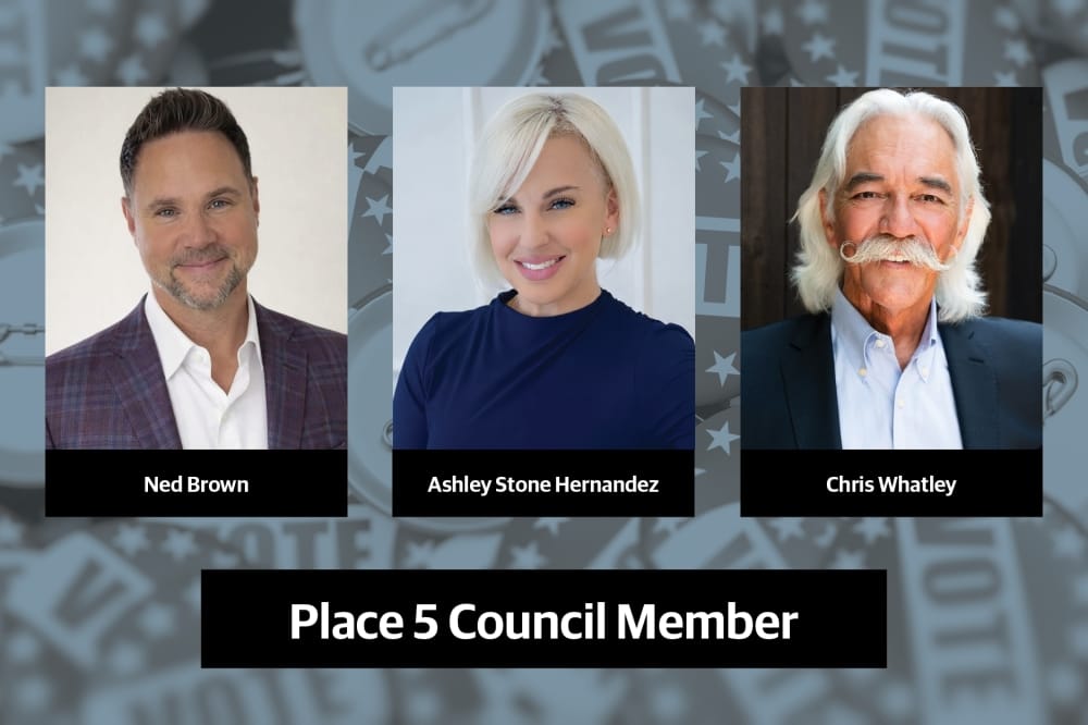 Chris Whatley is the incumbent for the Place 5 race. Other candidates include Ned Brown and Ashley Stone Hernandez.