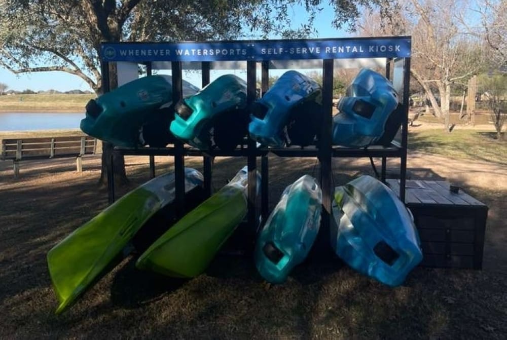 Whenever Watersports' self-serve kayak kiosk is now open at the 150-acre Sugar Land Memorial Park, the company announced in a Feb. 7 Facebook post.